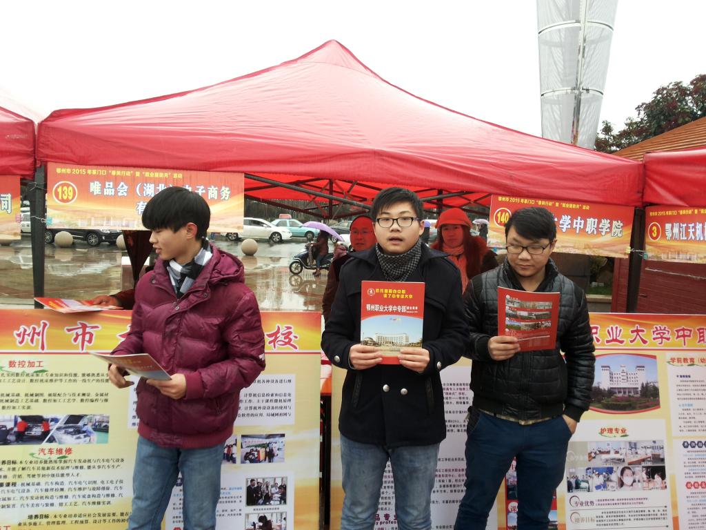 2015年1月28日上午,中职学院技工学校党总支副书记苏海元﹑学生科副科长姜爱国﹑团总支书记周芳﹑住楼辅导员王国银带领3名13级专业班学生参加了我市2015年“春风行动”大型现场招聘会。