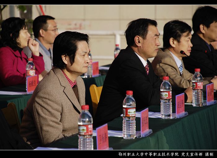 图六:中职学院院长余启利、副院长张刚民等领导在主席台上观看开幕式
