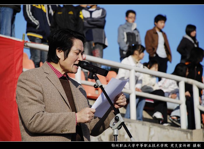 和着时代的节拍,为弘扬奥运精神,鄂州职业大学2008年冬季运动会于11月20日隆重举行。运动会开幕式在热烈欢快的气氛中拉开了帷幕,此次比赛历时两天半。校党委书记彭有轩、校长田巨平、副校长洪贞银等校领导出席了开幕式。开幕式中田校长激情洋溢地致大会开幕词,彭书记宣布运动会正式开幕。