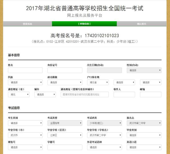 考生登录报名网站( 或 ),通过普通高考网上报名系统录入个人报名信息。鄂州市2016年12月1日,全省最后集中2016年12月8日—16日。(王国银、徐晓红、姜超、李繁、刘爱兰、陈凌及大专相关辅导员老师)
