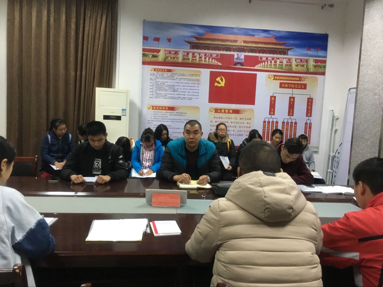 12月7日下午四点半,中职学院学生支部在教学楼一楼会议室开展2016秋季入党积极分子党培思想动员会,会议由学生支部书记姜爱国同志主持。