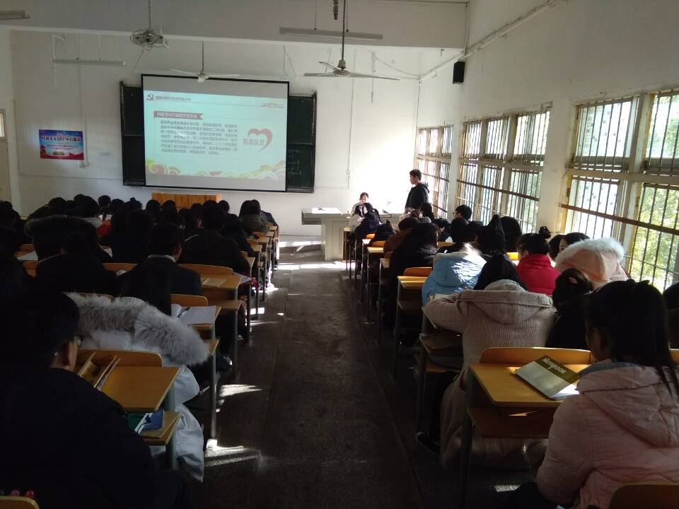 2017年12月25日上午,鄂州职业大学中职学院团总支在一号楼106教室召开以“践行新思想,拥抱新时代”为主题的团教活动。大会由我院团总支书记周芳来宣讲。参会人员有全体学生会干部以及各班团总支书记。