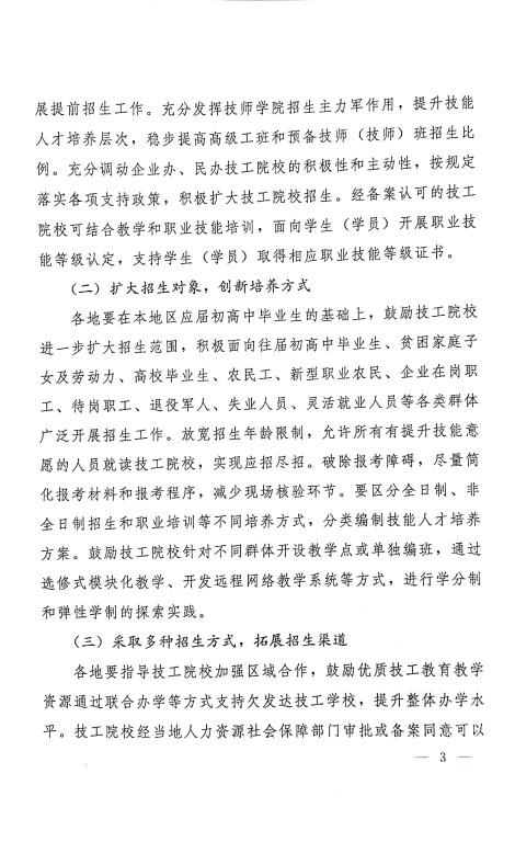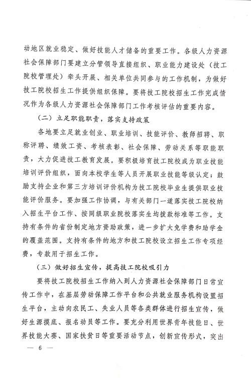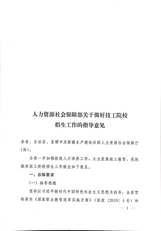 人力资源社会保障部关于做好技工院校招生工作的指导意见(人社部发[2019]76号)