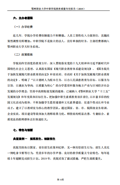 鄂州职业大学中等技术学院中等职业教育质量年度报告