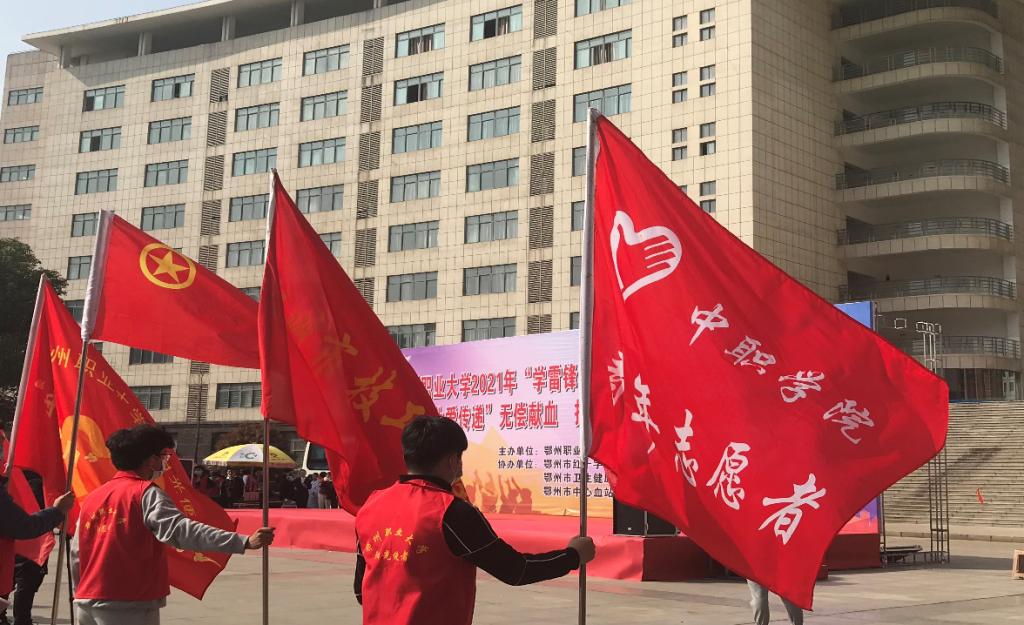 3月4日下午15:00中职学院团总支书记周芳带领中职学院30名青年志愿者,在鄂州职业大学南门广场参加鄂州职业大学2021年“学雷锋”志愿服务活动月启动仪式暨“让爱传递”无偿献血 捐赠造血干细胞动员大会。