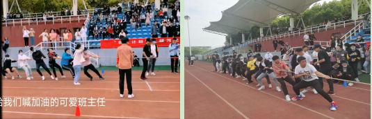 首先进行的是2020级的拔河比赛,各班参赛的队员们在田径场上摩拳擦掌,在哨声响起后,都卯足了劲拼命向后拉。随后进行的是2019级的拔河比赛,相对于2020级的学生来说,2019级的学生们更加注重取得胜利的技巧。比赛进行的热火朝天,旁边的拉拉队也不甘落后,各班班主任带着本班未参加的同学在旁边为他们加油鼓劲。一时间场上呐喊声,哨子声此起彼伏。