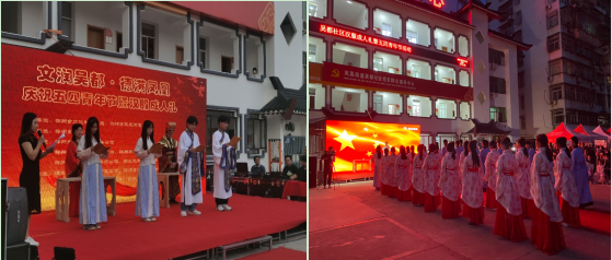 喜迎五四青年节,鄂州职业大学中职学院于5月4日晚,在吴都社区隆重举办“汉服成人礼暨五四青年节活动”,其中中职学院共有36名学生参加本次成人礼活动。