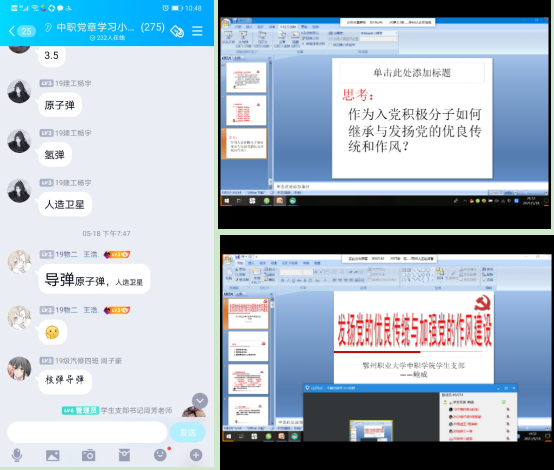 为激发青少年学生的政治热情、引领青少年学生的政治选择、树立青少年学生的政治理想,不断强化青少年学生对党的政治认同、思想认同、情感认同,培养德智体美劳全面发展的社会主义建设者和接班人。2021年5月18日晚7:30,我院党员教师鲍威同志利用网上学习平台,通过网上直播课的形式为我院学生开展了一堂别开生面的党史学习直播课。
