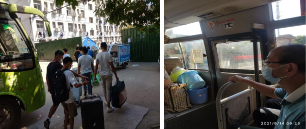按照防疫要求,新生在进行测温和查验健康码、行程码以及48小时之内有效核酸检测报告后进入校园。在不允许家长进入教学区和宿舍区的情况下,为方便新生行李搬运,校园内特增设两批次摆渡车。新生在沿途不仅可以观赏校园风景,也能短暂的消除舟车劳顿的疲倦。我院采用“一条龙”式服务,由学生家长送到校门口,就有学长学姐帮忙提行李,送到报名点,志愿者们便秩序井然的带领新生办理入学手续,男生再上摆渡车接送到宿舍门口,然后由学长们帮忙搬行李到宿舍。