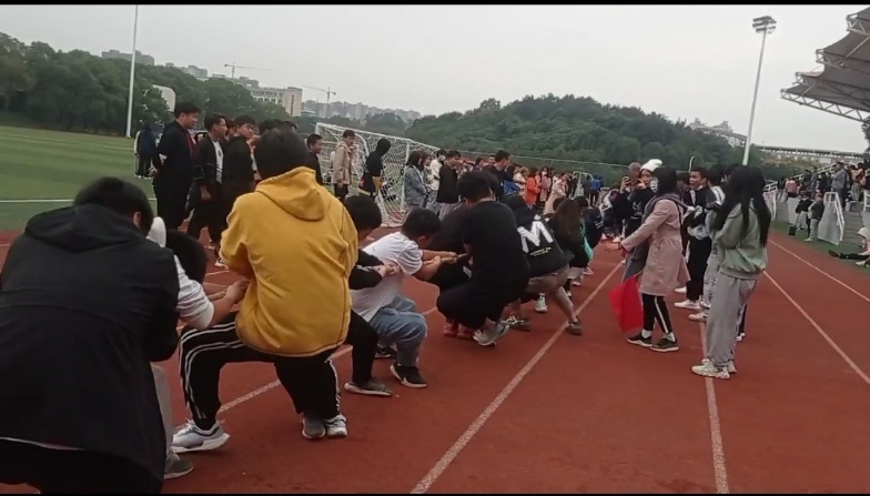 参赛拔河比赛的重量级选手们精神抖擞,相互鼓励,默契十足,步伐节奏统一,不断挑战自我,经过一个多小时的激烈角逐,拔河比赛赢了商学院、电子电气工程学院,最后获得全校第三名的好成绩。