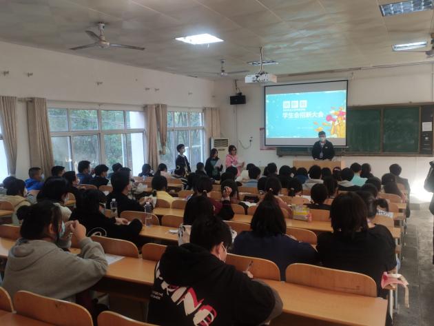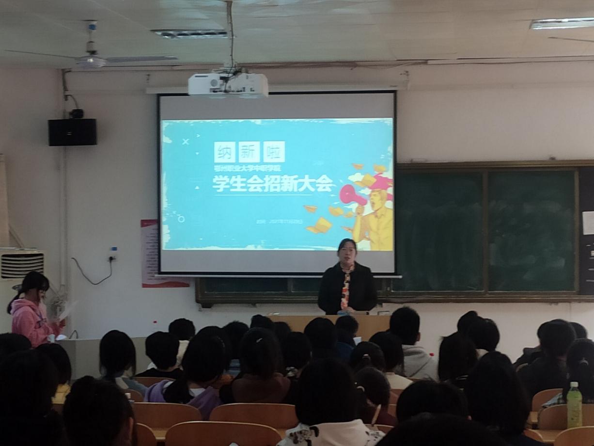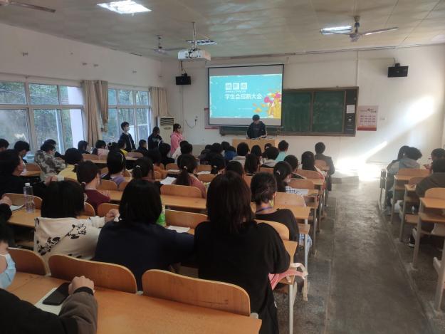 20211129下午,我院学生会在101教室举行纳新大会。参加本次大会的院领导、老师团总支书记周芳书记、王修月老师、庞林林老师、丁燕东老师、杨红老师、向文娟老师、王潮洪老师及21级班主任