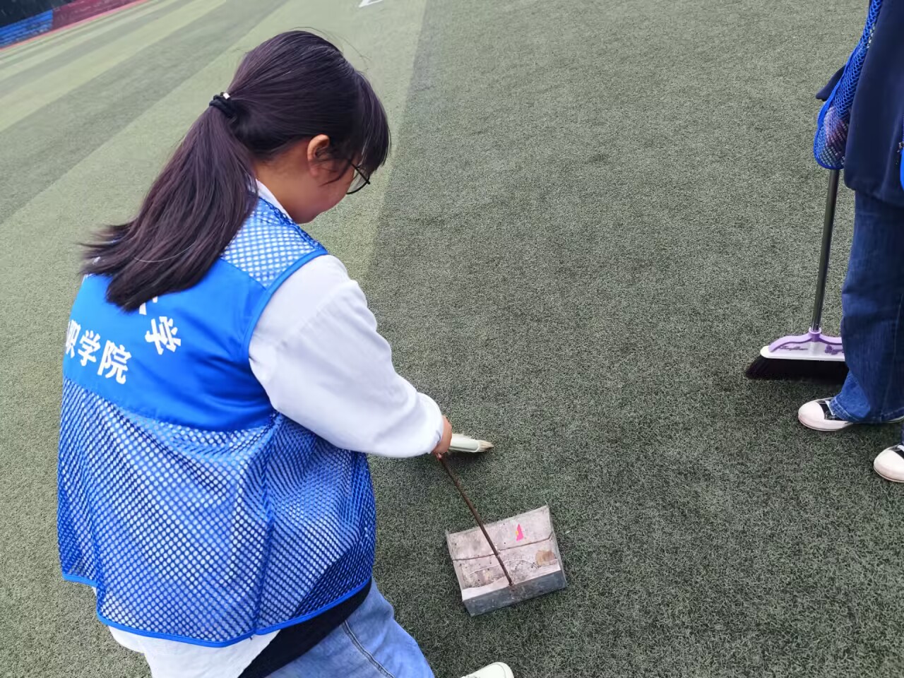 在院领导的带领下,师生主要分为两个部分,老师和各班负责教室和教学楼公共区域卫生,学院志愿者服务队负责整个西校区的公共区域卫生。师生们纷纷拿起劳动工具,干劲十足,每个角落都被师生们打扫得干干净净。