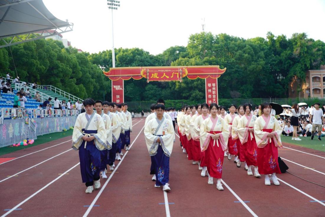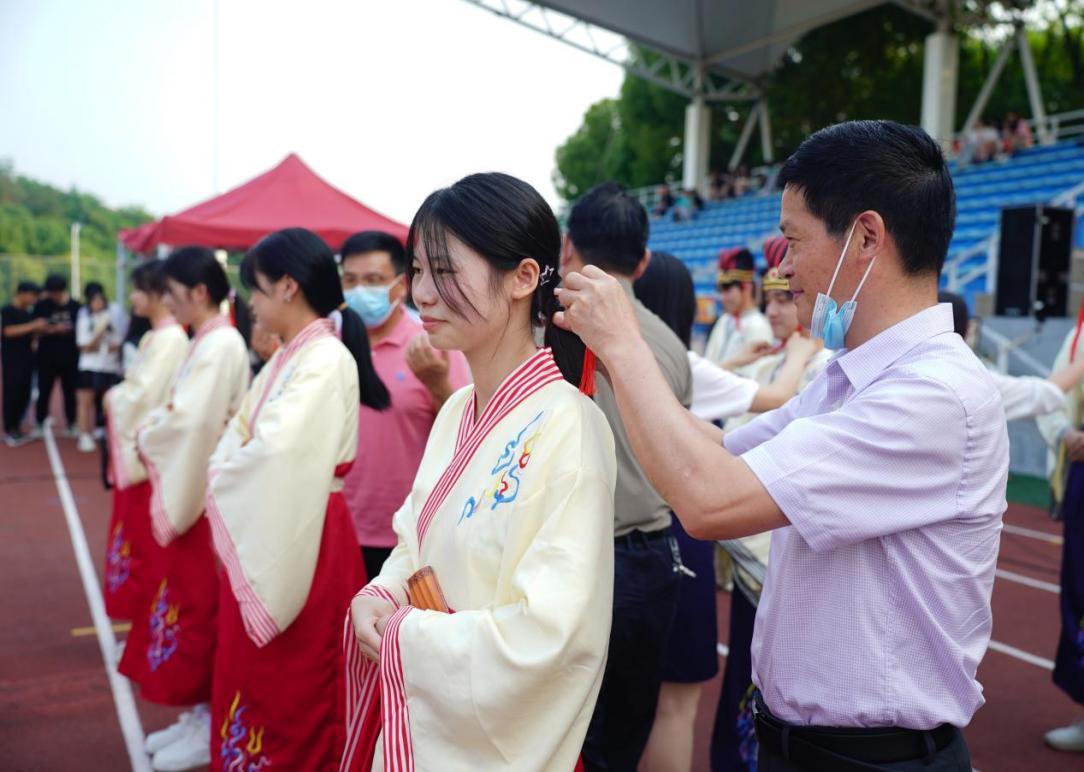 在比赛中间,学院还为即将毕业的20级学生举办了仪式感满满的十八岁成人礼仪式。同学们身着汉服,在全体老师和部分家长代表的共同见证下,以自信、昂扬的姿态,带着成长的喜悦和沉甸甸的责任感,走过“成人门”,预示着他们即将长大成人。领导嘉宾和老师们还走上台为他们加冠,希望同学们从此学会立志,学会感恩,学会担当,学会面对人生路上的一切困难和挫折。