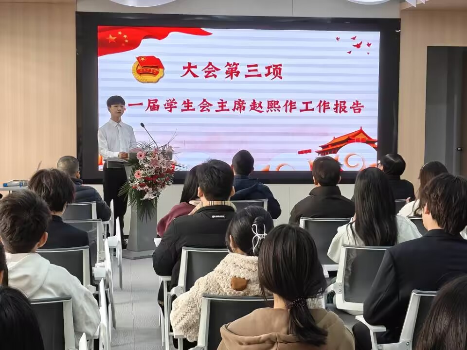 接着,上一任学生会主席21级数控班的赵熙同学做代表学生会作述职报告,他回顾了一年多以来学生会的各项工作,总结了在各项学生工作中取得的优异成绩,与大家分享了上一届学生会工作的经验,向学院领导、老师对学生会工作的大力支持表示感谢,对学生会全体成员的辛苦努力和无私奉献给予了肯定表达了谢意,并祝愿新一届学生会未来更加美好。