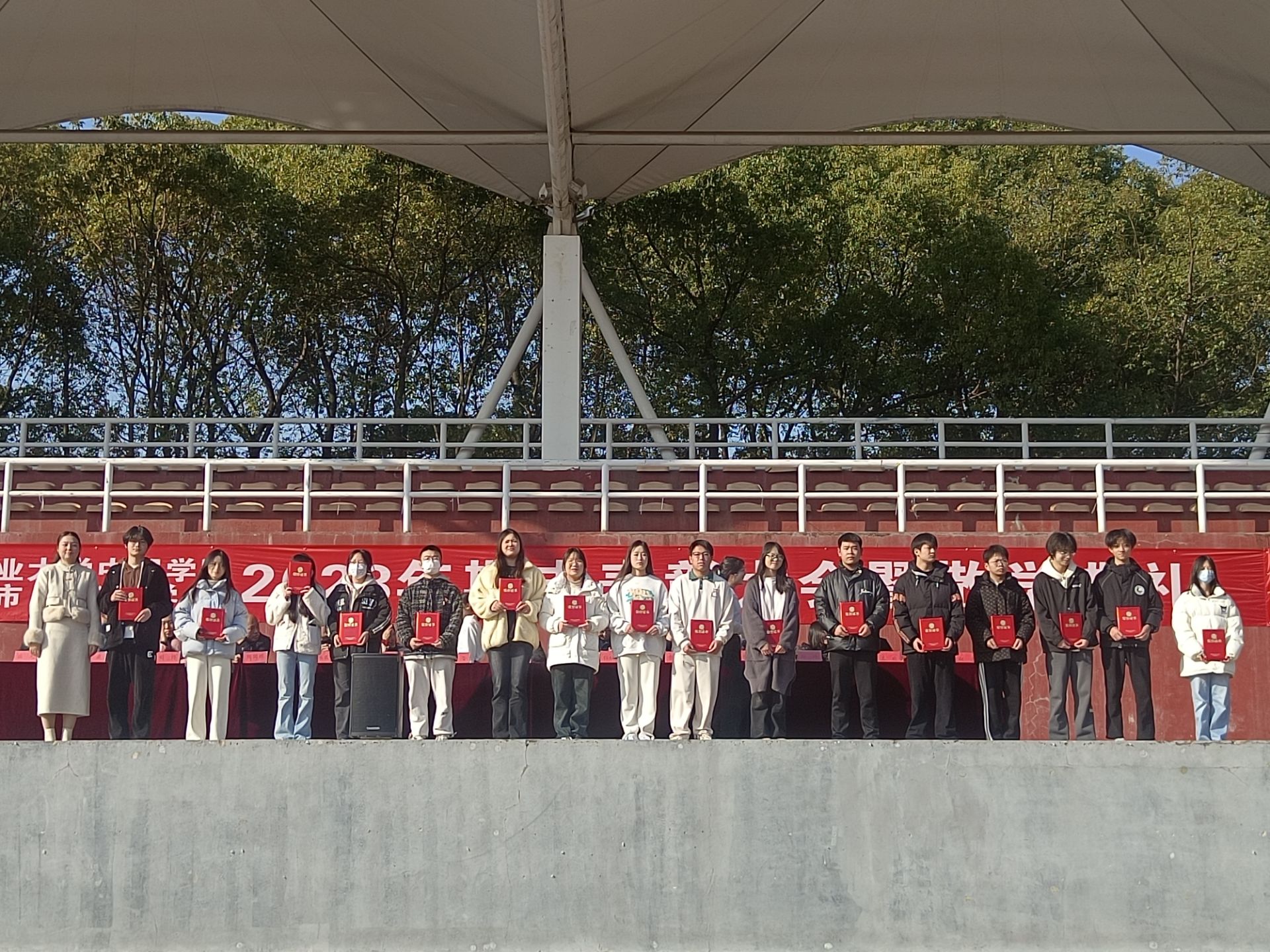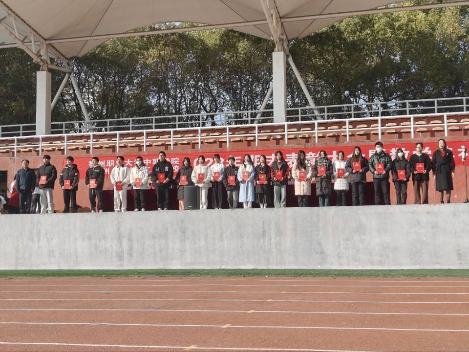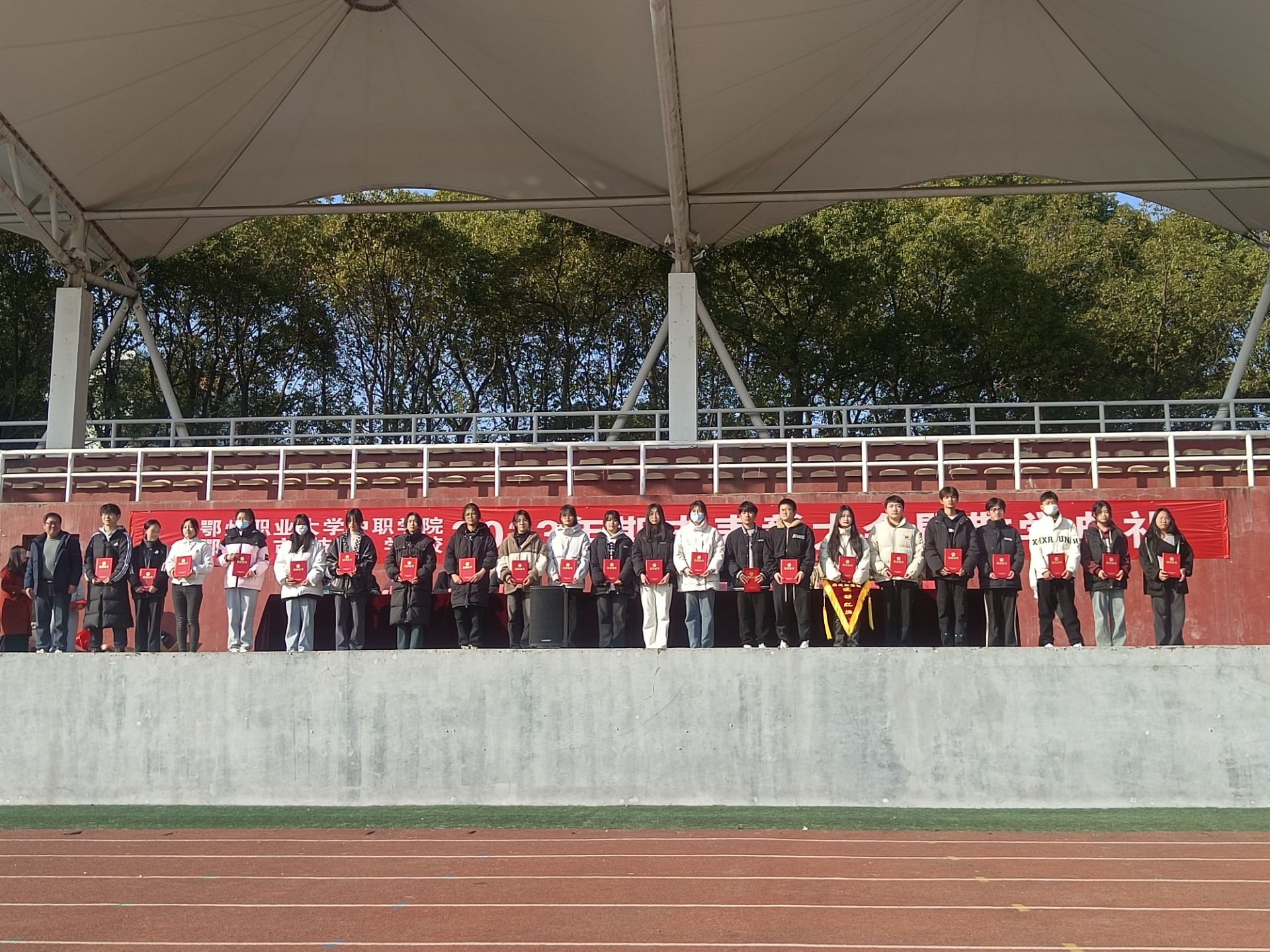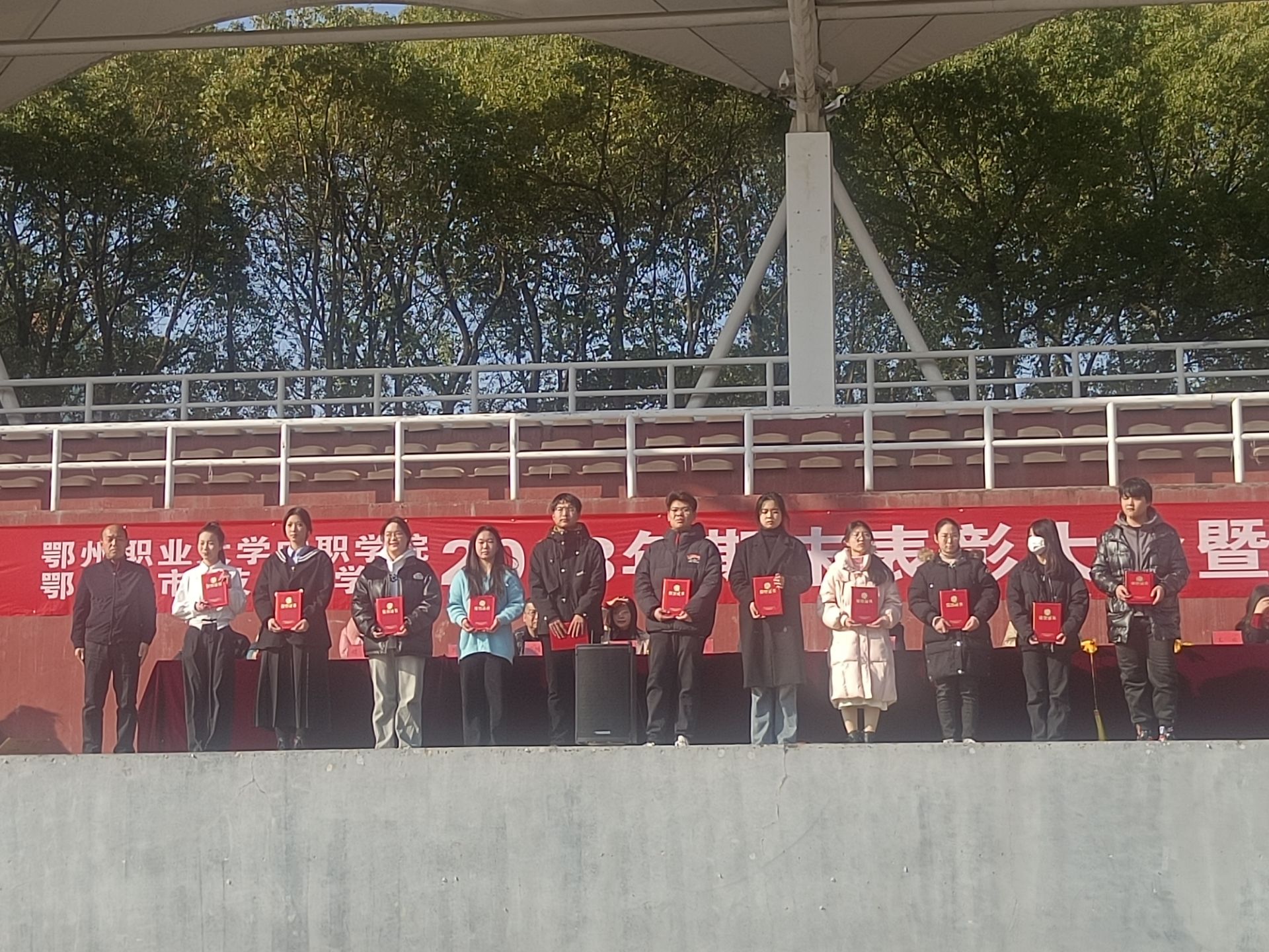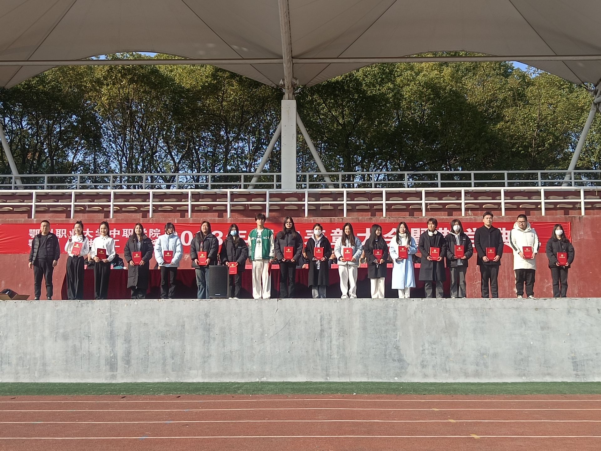 钟主任为鄂州职业大学中职学院各专业一等奖的获奖学生颁奖