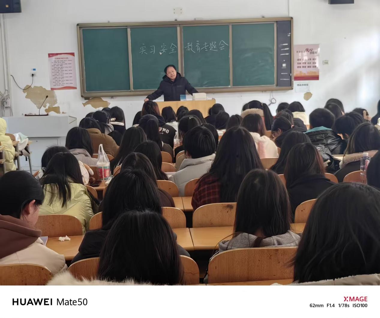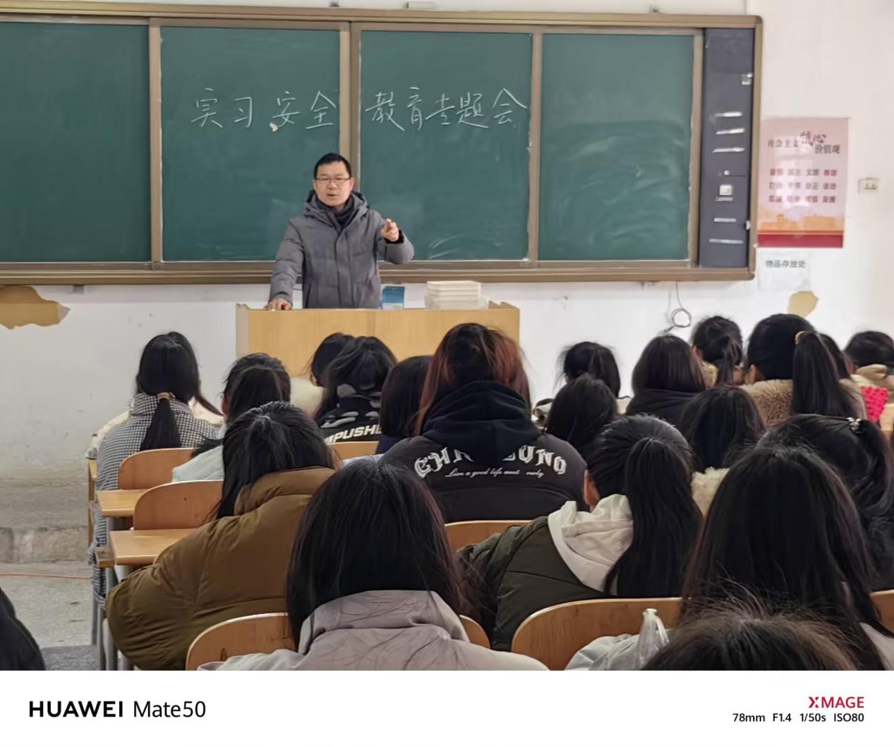 随后,实习指导教师孙冯从实习的意义、实习要求、实习安排、实习学生管理等方面向全体实习生进行了全面而详细的讲解,并从自身工作经历出发,为学生们分析了实习中常见的问题及处理措施。