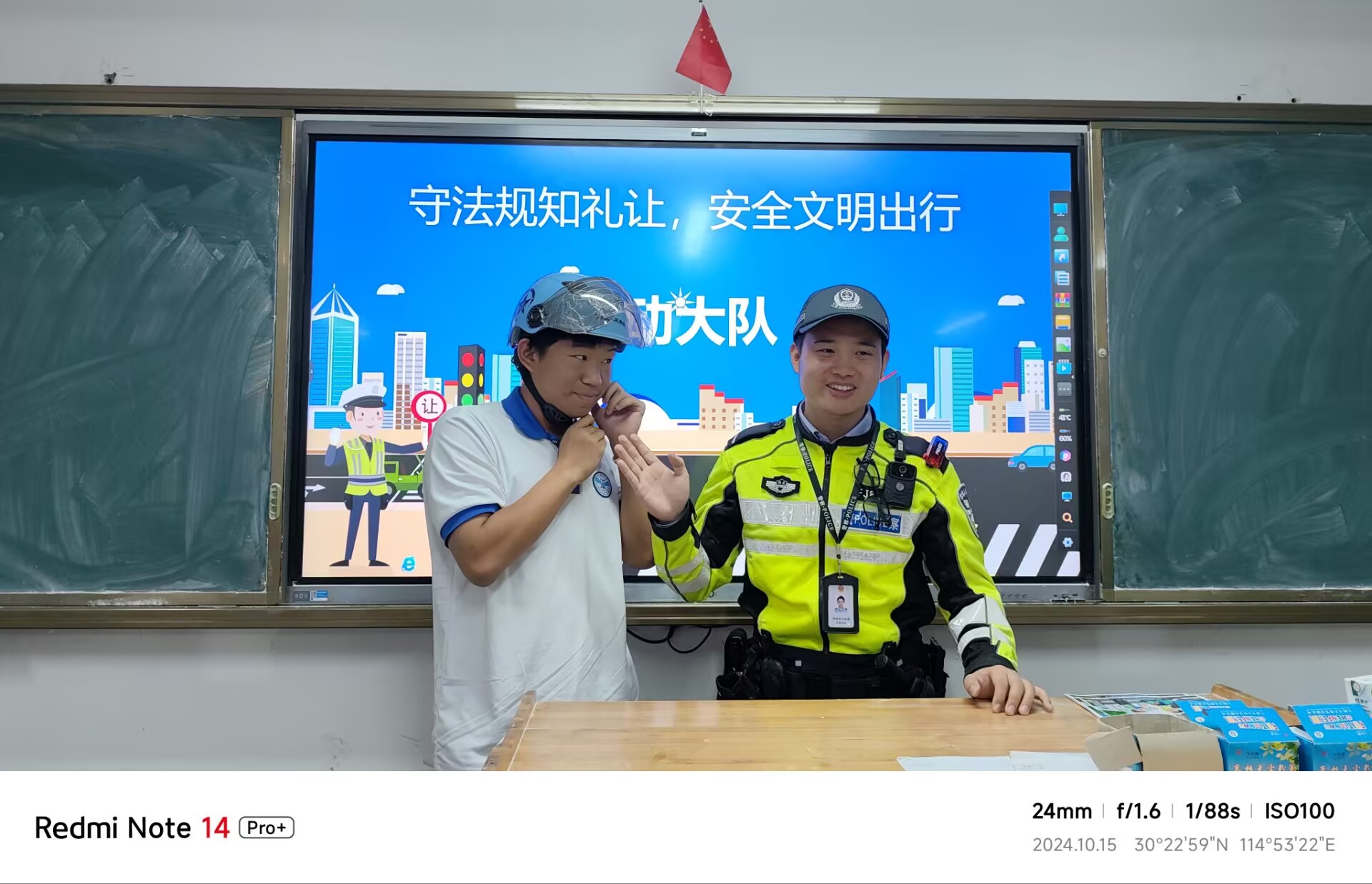 2024 年 10 月 15 日,鄂州市公安铁骑大队走进鄂州职业大学中职学院,开展了一场生动且极具教育意义的“一盔一带”安全知识讲座。