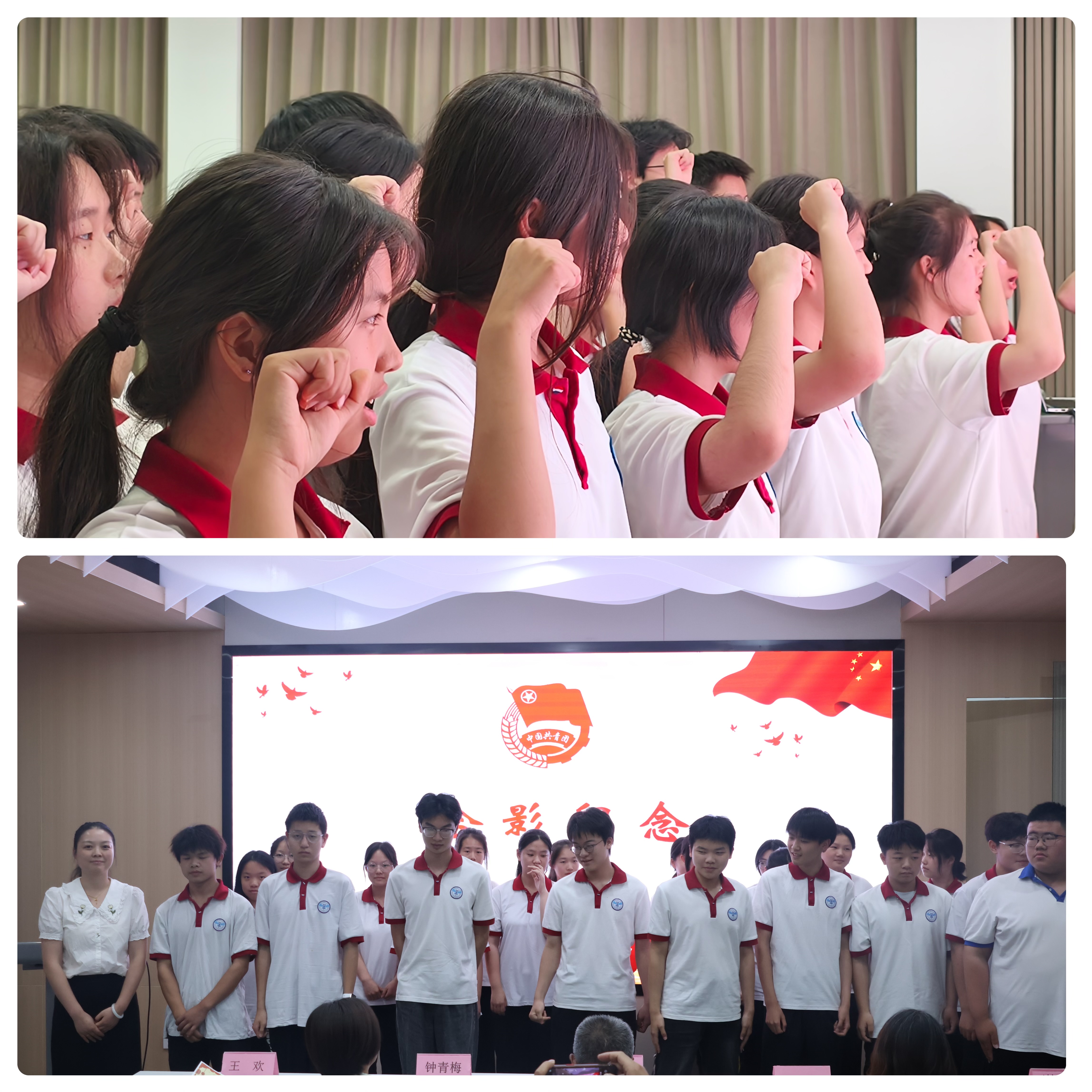 决赛特别设置"新团员入团宣誓"环节。在团旗下,29名新团员握拳宣誓,团总支书记王欢带领宣誓,铿锵誓言与朗诵主题交相辉映,将活动氛围推向高潮。