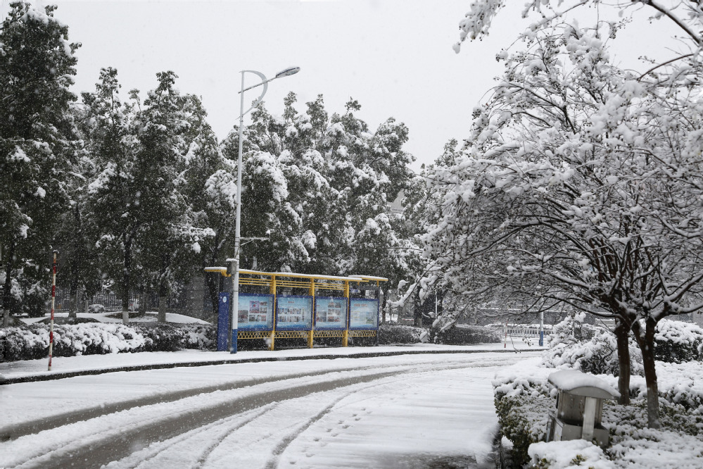 冬雪中的校园一角