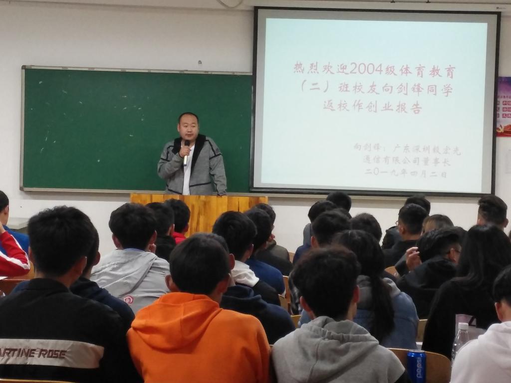 热烈欢迎2004级体育教育(二)班校友向剑锋同学返校作创业报告