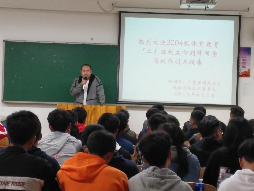 热烈欢迎2004级体育教育(二)班校友向剑锋同学返校作创业报告