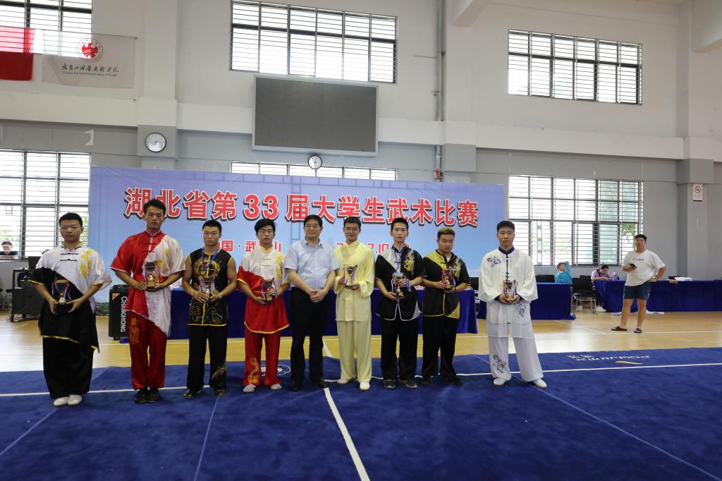 2019年7月9日—13日,湖北省第33届大学生运动会武术比赛在武汉体育学院武当山国际武术学院举办。我校7名运动员参赛,斩获男子团体第三名、女子团体第四名、金牌5块、银牌6块、铜牌2块,2人荣获精神文明运动员称号。