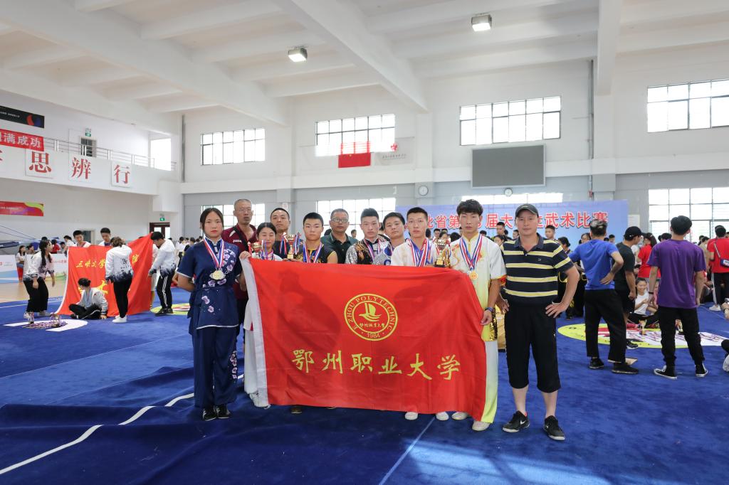 2019年7月9日—13日,湖北省第33届大学生运动会武术比赛在武汉体育学院武当山国际武术学院举办。我校7名运动员参赛,斩获男子团体第三名、女子团体第四名、金牌5块、银牌6块、铜牌2块,2人荣获精神文明运动员称号。