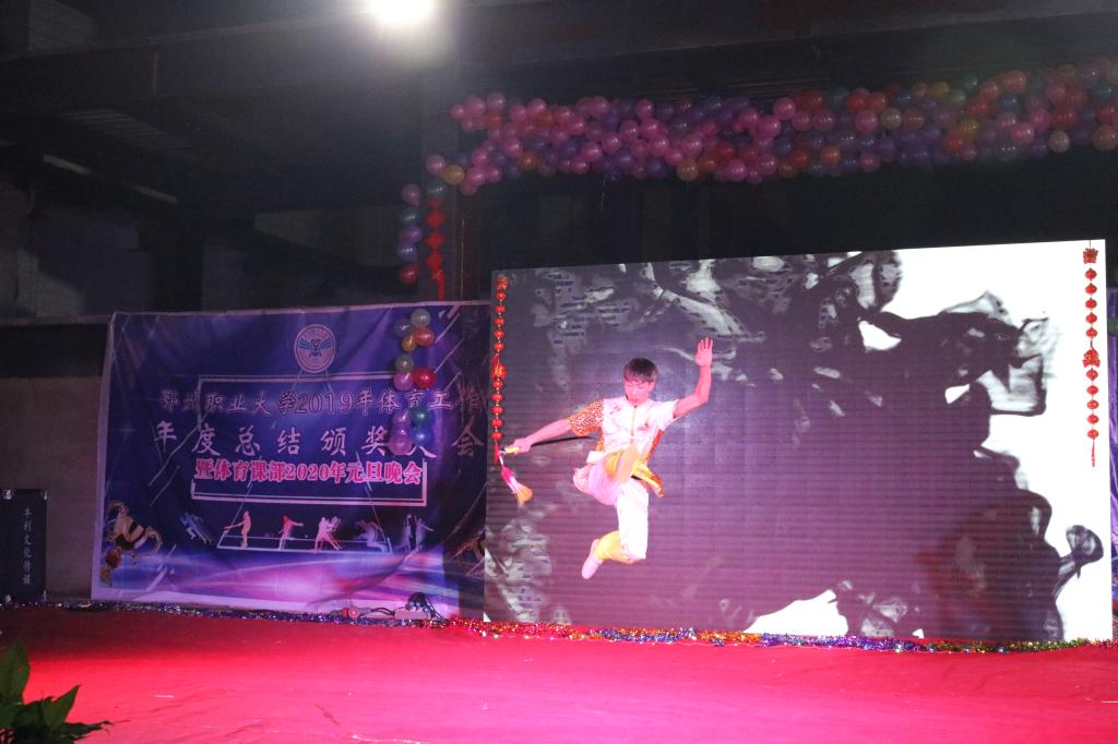 2019年12月31日晚19:00整,鄂州职业大学2019年体育工作年终总结颁奖大会暨体育课部2020年元旦晚会在学校体育实训中心一楼隆重开幕,这是建系以来,首次召开大规模的会议,既总结了成绩、表彰了优秀,又为我部在以后的工作中取得更好的成绩和长足的发展指明了方向。其具有里程碑的意义,鼓舞人心,全体师生为之振奋。