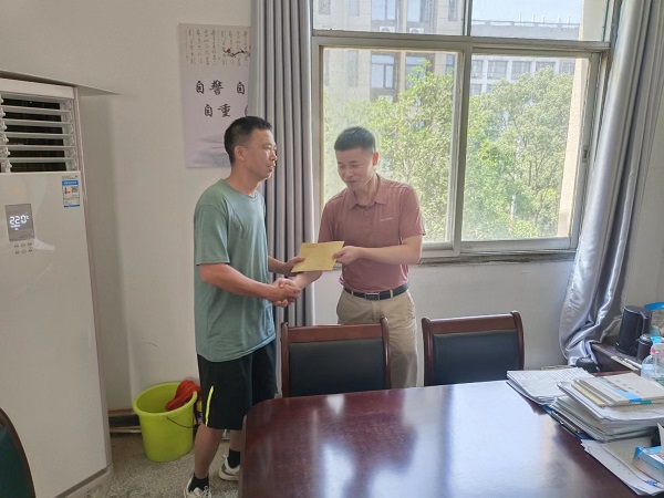 2022年6月30日上午10:30整,鄂州职业大学副校长王红山、财务处长陶修宁一行来体育课部慰问困难党员。