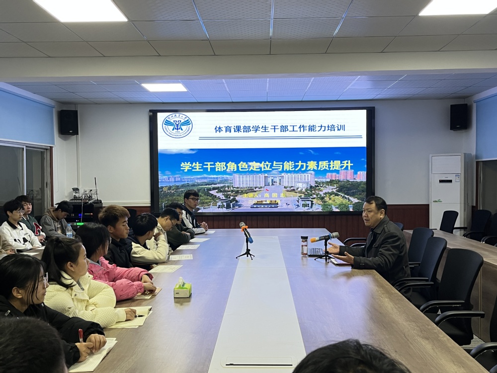 为加强学生干部队伍建设,提升服务能力,体育课部于3月22日晚在二号教学301会议室楼举办2023年上学期学生干部能力提升培训,团总支、学生会全体成员参加了培训。培训由团总支书记余昊主持。