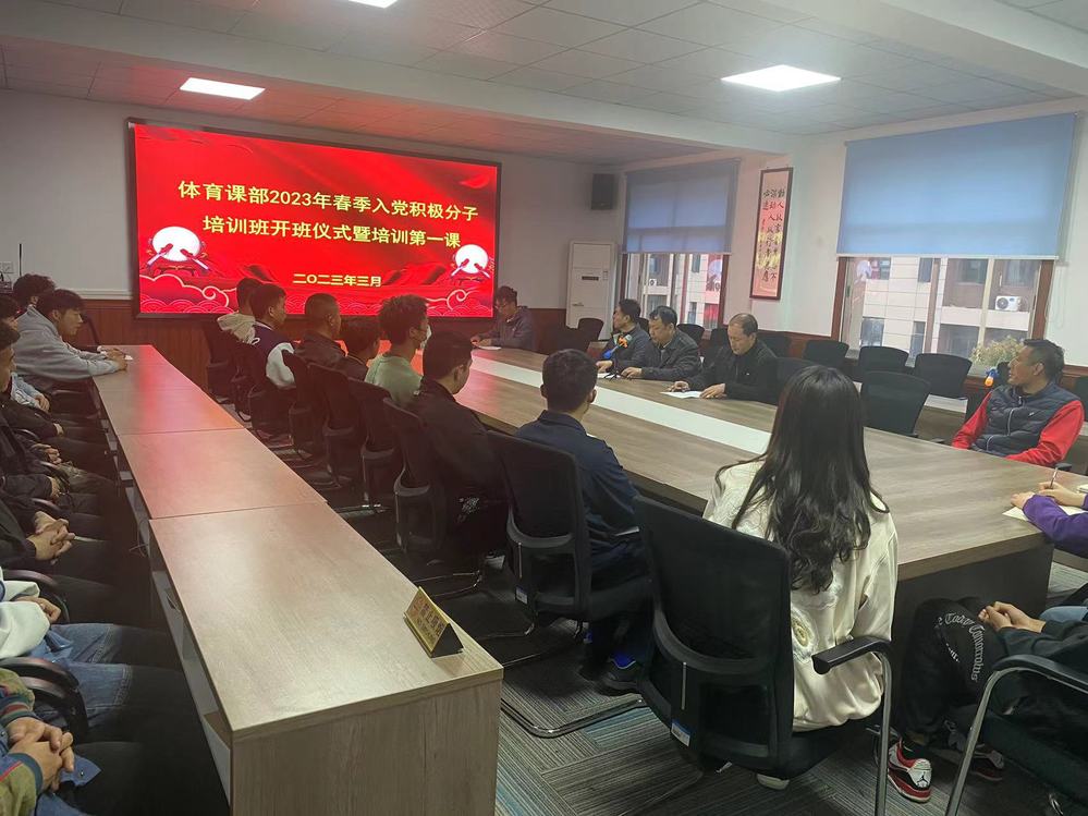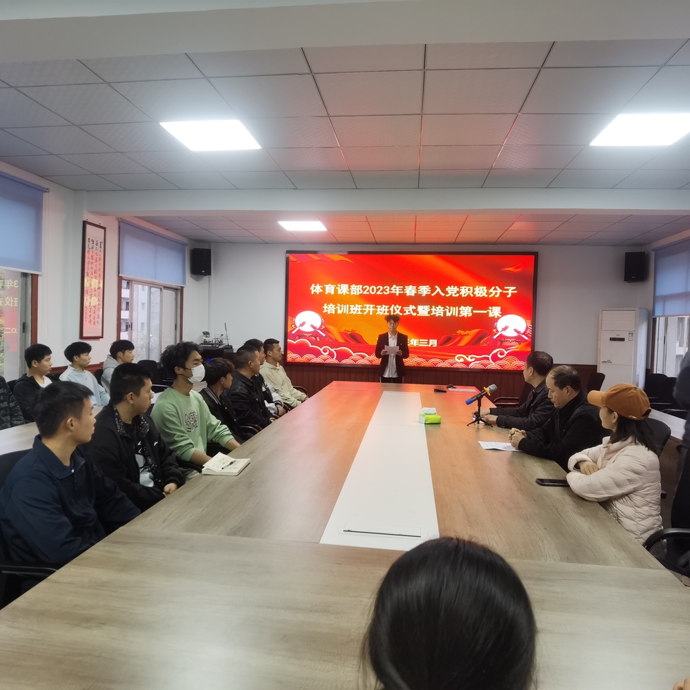 3月28日下午6点,体育课部在二号教学楼三楼S301会议室举行2023年春季入党积极分子培训开班仪式暨培训第一课。体育课部党支部书记熊志超、支委全体成员、团总支书记,2023年春季全体入党积极分子参加此次开班仪式。开班仪式由副书记高国志主持。