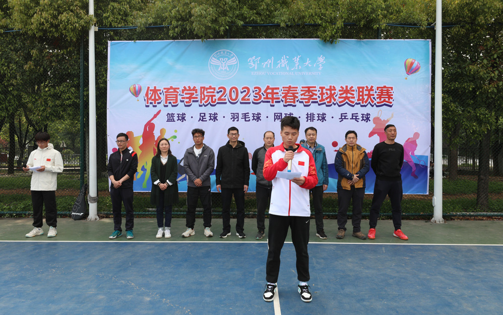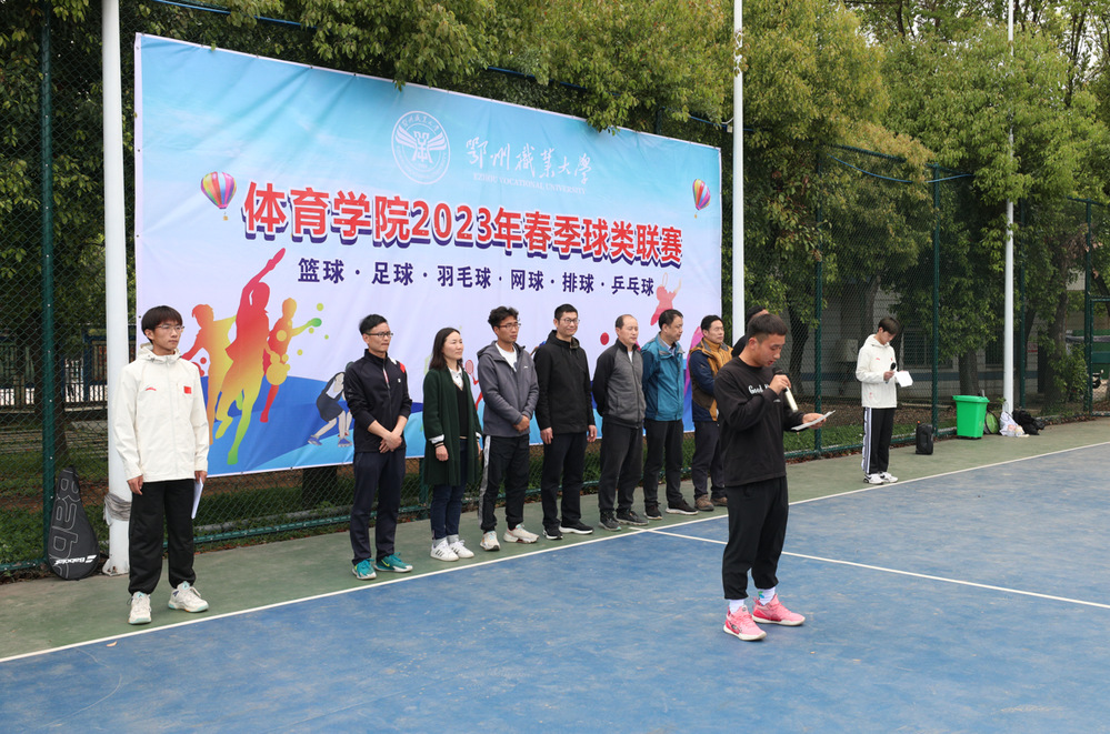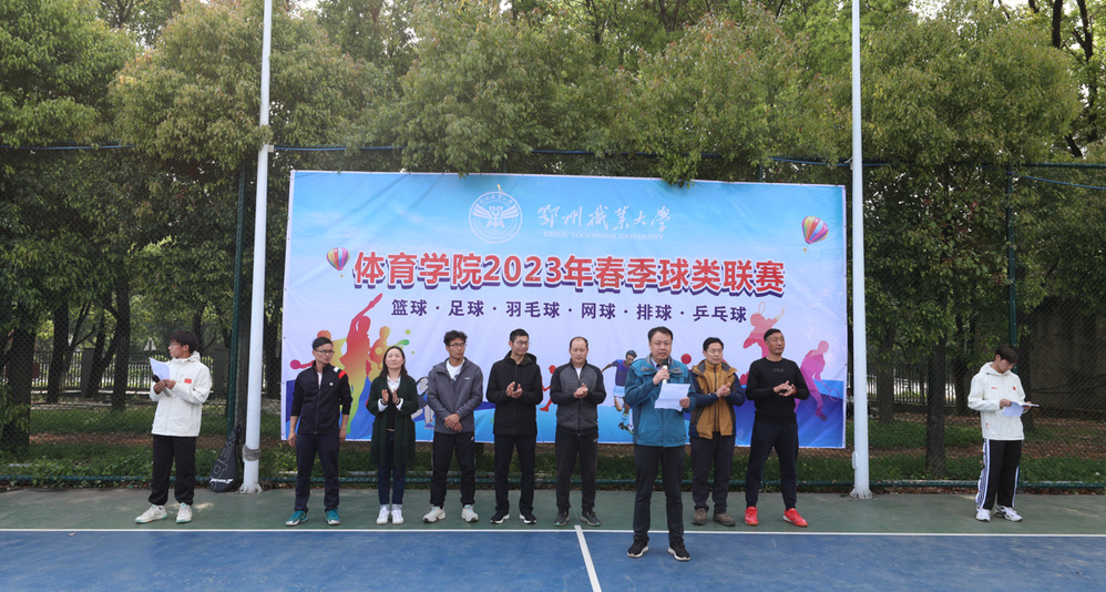 为大力推进校园群体性体育活动,深入开展学生“阳光体育活动”,4月6日下午,鄂州职业大学2023年春季球类运动会在学校三号篮球场开幕。体育课部主任熊志超、副书记高国志、副主任谢义群及全体体育教师参加了活动。
