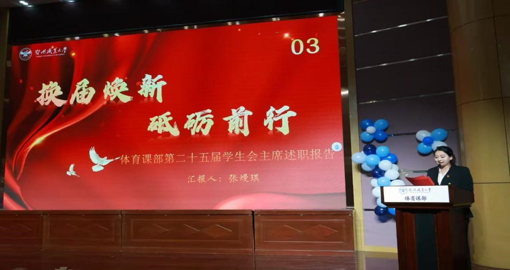 大会在庄严的中华人民共和国国歌声中拉开帷幕。随后,第二十五届学生会主席张熳琪作述职报告,她回顾了任期内学生会在体育活动组织、学生服务等方面的工作成果,分享了工作中的收获与感悟,同时也指出了工作中存在的不足,并对新一届学生会寄予厚望。