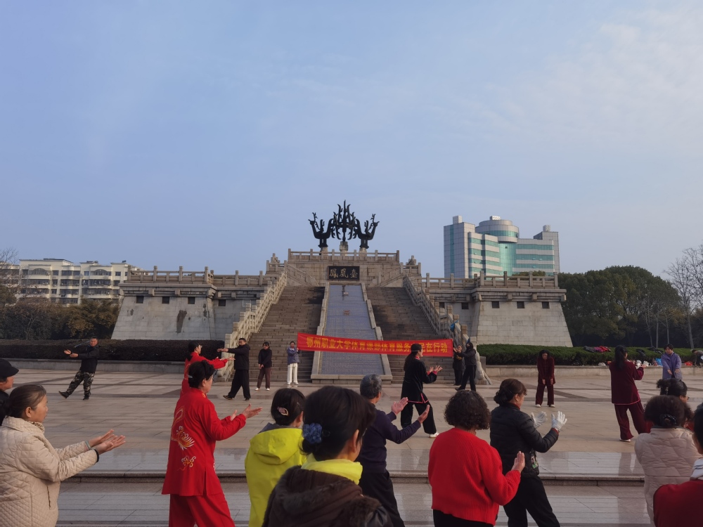 在凤凰广场,体育课部教师现场指导市民练习“健身气功”,从呼吸节奏到动作要领逐一示范、耐心纠正,引导群众在舒缓舒展的招式中感受传统健身功法的魅力,营造了浓厚的全民健身氛围,让科学健身理念深入人心。