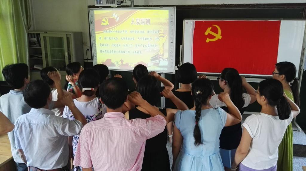 在教工二支部的交流会上余启泉同志带头作了有关“中国共产党入党誓词的演变及其解读”的交流,另外南利君、钟芝和同志也先后进行了交流,其他党员都在认真做笔记,这个主题党日活动进行得非常有意义。