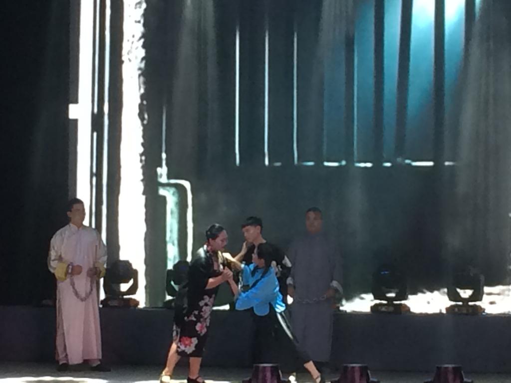 随着灯光的悄然变化,晚会在我校各院部团总支书记表演的情景表演《与信仰对话》中走向高潮,我院系的吕婷书记同学生一起的深情演出为观众呈现了丰盛的视听盛宴。其次,教育与管理学院的舞蹈《大山支教》为我们展示了在和平年代也有着无私奉献自己青春的英雄,他们把爱播撒到更高更远的大山深处。表演深处,观众不禁为这个关于爱关于奉献的故事落下感动的泪水。