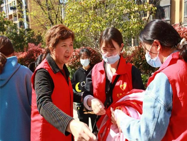 到了目的地之后,苏柳英志愿者小组成员积极协助配合社区工作人员的工作,向社区居民宣传医保政策并为社区居民送上莲花山医院准备的具有去湿气作用的药包。为了保证社区居民都能领取到药包,小组成员分工明确,五人协助社区工作人员分发药包,两人负责记录与提醒,三人与区医保局业务工作人员一起向居民宣传医保政策,面对社区居民偶尔提出的疑问,小组成员也会及时的为他们解答。