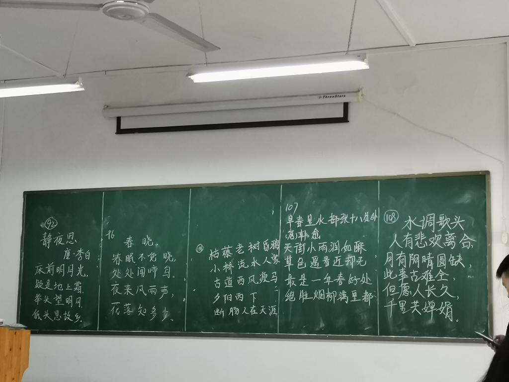 本次粉笔字比赛,分两个教室同时进行,序号1-50的选手在406教室,由吕婷书记带领的45位评委进行评选;51-108的选手在305教室,由院学生会宣传部部长代格、副部长李欣珉带领的45位评委进行评选,满分为十分制。比赛现场选手们采用小黑板书写形式进行书写,板书内容统一,选自中华经典诗词歌赋等文学作品,时间限制在5分钟内。