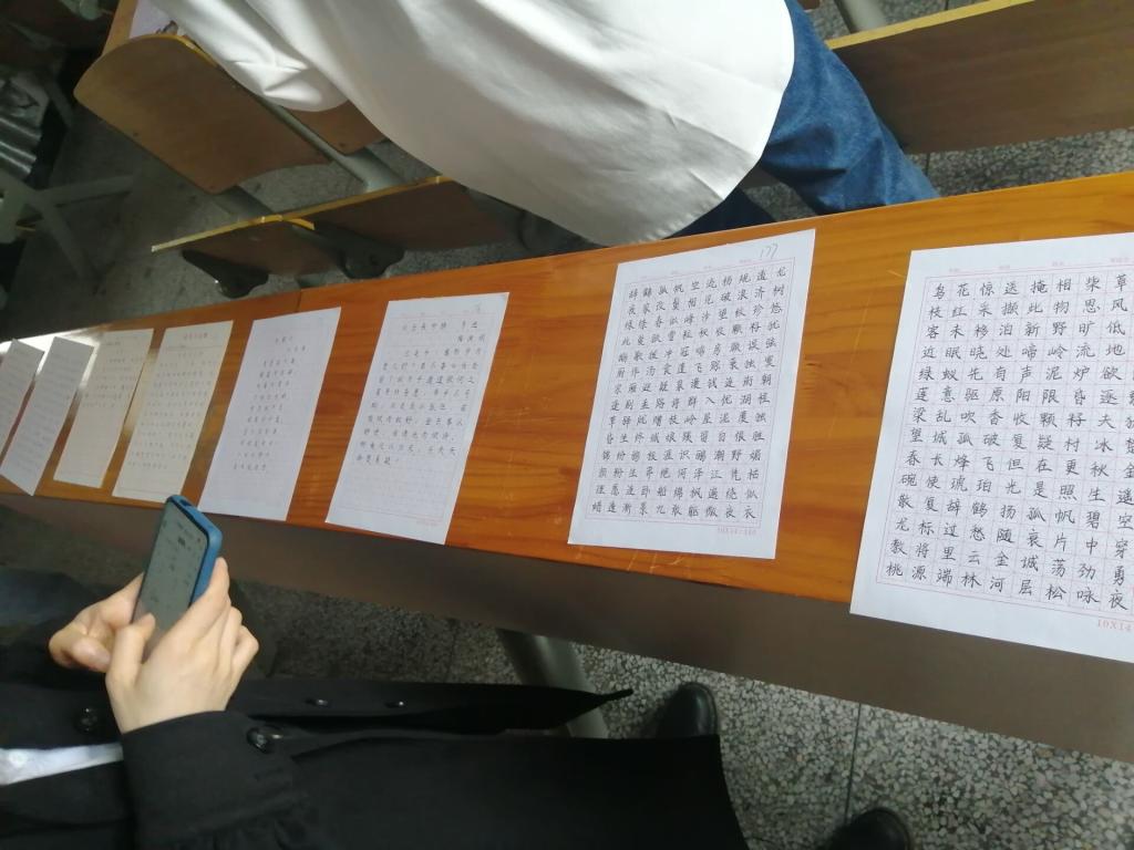 4月18日到4月20号期间共收集了210副精美的书法作品。24位评委自行浏览选手作品进行打分。在这次硬笔书法比赛过程中,各班同学踊跃参加。在自己的作品上,每一个字,都包含了自己对于汉字的理解与情怀,都尽其所能的完成了自己的用心之作手们所书写的书法作品。有的洒脱大气、有的道劲刚毅,有的飘逸舒展,其运笔与结构都形神俱佳。