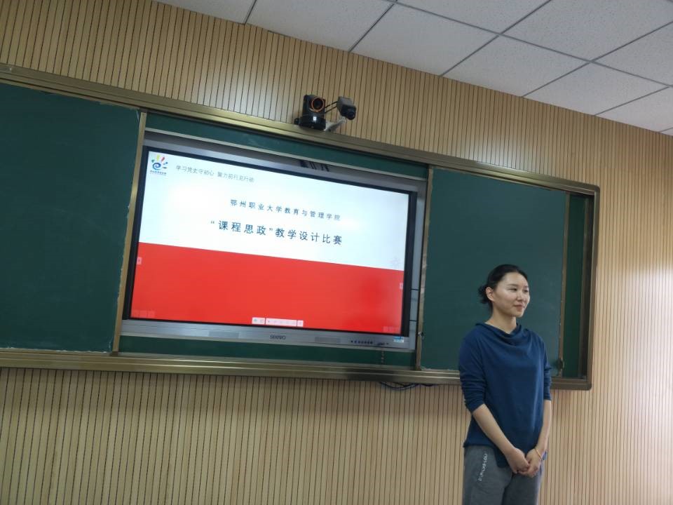 (胡钰清供稿)为持续深入贯彻落实好全国全省高校思想政治工作会议和教育部《高等学校课程思政建设指导纲要》等文件精神,推动教师承担“课程思政”主体责任,充分发掘各类课程中蕴含的思想政治教育资源,提升立德树人的能力,根据鄂州职业大学教务处鄂大教发[2021]12号文件要求,5月24日下午,教育与管理学院举行了“课程思政”教学设计比赛。