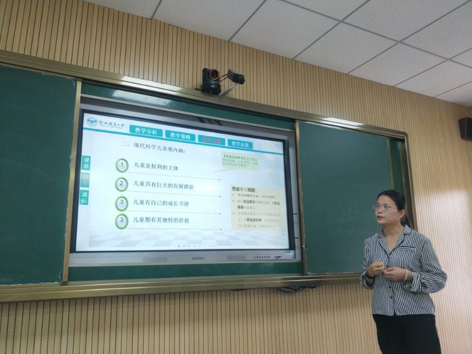 各教研室推荐的优秀老师参加了学院“课程思政”教学设计比赛。比赛现场包含教师现场展示、评委打分、现场点评及指导等环节。现场5名优秀教师经过精心准备,从自己学科特点出发,分别展示小学语文教学法、导游实务、学前教育学、基础心理学、幼儿舞蹈编排五门课程的“课程思政”教学设计,包括教学分析、教学策略、教学实施、教学反思五个方面。部分教师在现场观摩学习。