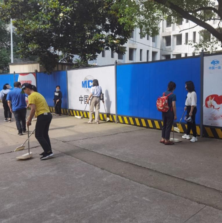 老师们手持扫帚、亲自上阵、互帮互助,不留一处死角。在老师们的带头作用下,同学们也自告奋勇地组织到卫生负责区进行清扫活动。