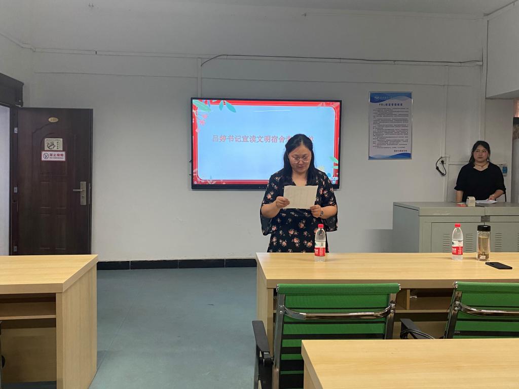 随后,我院团总支书记吕婷在本次活动中宣读了获得文明寝室的宿舍名单,评比结果有5个党员干部文明寝室和10个星级文明宿舍,20个文明宿舍等,其中包括19级和20级同学。创建宿舍精神文明建设开展贡献力量,也为了进一步加强对我院的安全管理,培养学生的良好生活行为习惯,激发同学们爱校如家的热情,形成一个奋发向上、锐意进取、文明和谐、舒适安全的学习生活环境。