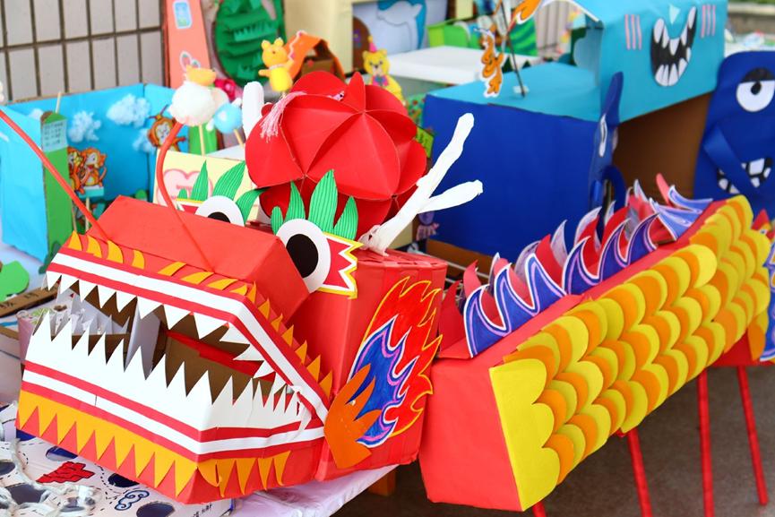 恰逢建党百年华诞,同学们运用自己的专业技能,为党献礼。十二个时间节点的刻纸,生动形象地展现了共产党筚路蓝缕的百年历史,历尽艰难坎坷而不倒,在纵横交错的复杂环境中矢志不渝。这种伟大的精神更是同学们在今后教师生涯中要不断践行的。腾飞的巨龙不仅象征着现在的中国,也带着同学们对党的美好祝愿。