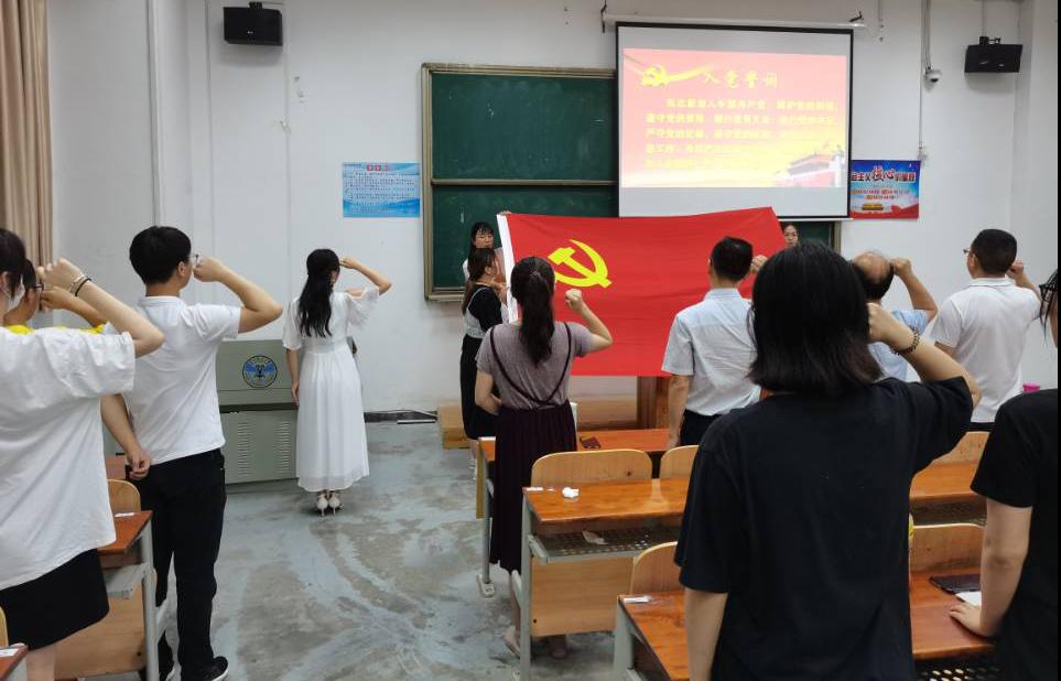 【19小教一班王鑫供稿】“我志愿加入中国共产党,拥护党的纲领,遵守党的章程,履行党员义务.......”2021年7月1日,鄂州职业大学教育与管理学院为2021年上半年新发展的123名预备党员举行了入党宣誓仪式。