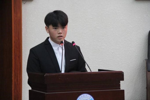 第一届宿管会主席刘睿同学上台发表就职演讲。刘睿同学对未来的工作计划进行了阐述,希望和各部门成员披荆斩棘,再创辉煌。