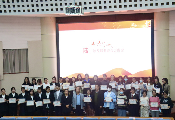 接着,教育与管理学院党支部副书记瞿信柏发表讲话,肯定了学生会的工作成绩,希望新一届学生会能够做的更好!随后,由陈院长、瞿书记、吕书记为第15届学生会干部颁发聘书。