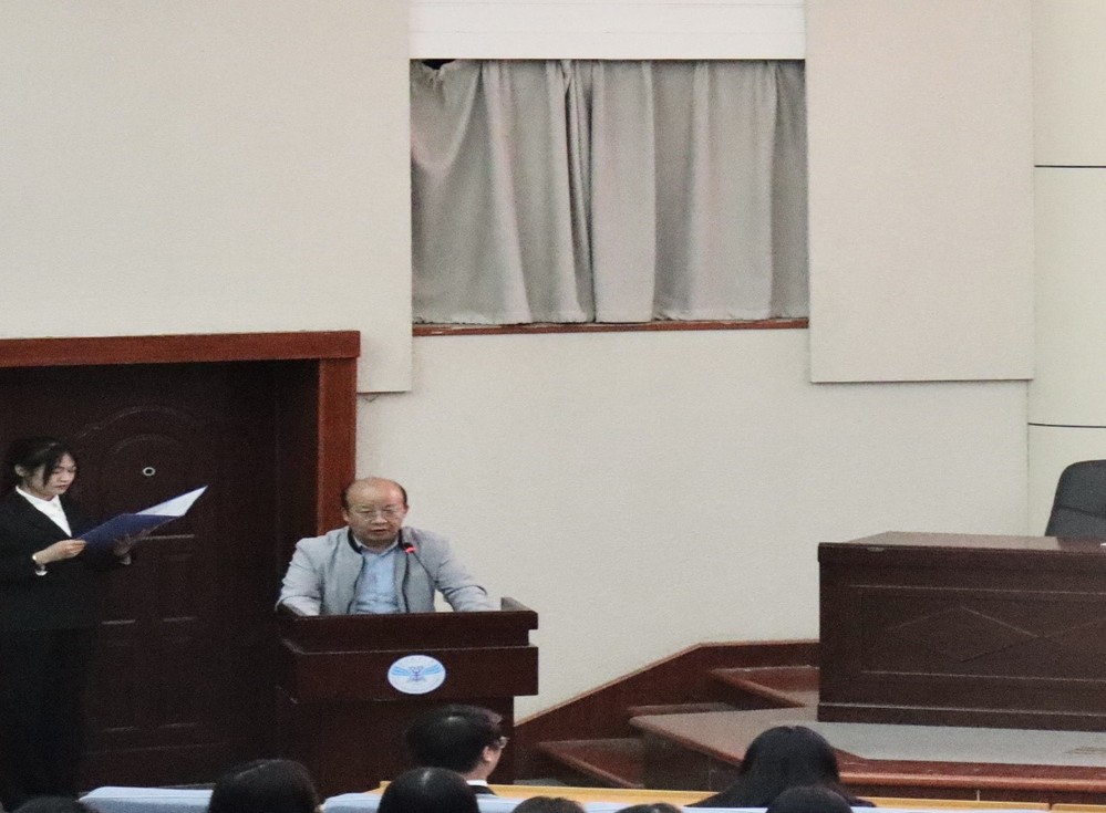 15届院学生会换届竞选活动于七点正式开始。伴随着国歌的响起,大会拉开了帷幕。首先,由教育与管理学院院长陈适发表讲话,肯定了学生会上一年度的工作表现,对学生会全体成员表示赞赏和感谢,并希望院学生会干部们未来再接再厉!