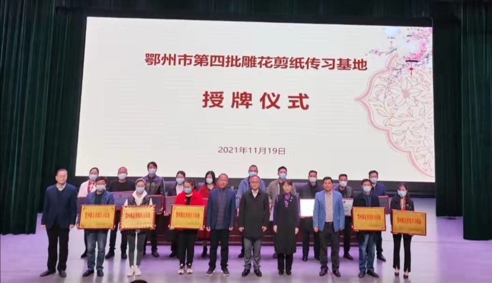 今天上午,我校教育与管理学院雕花剪纸技能大师工作室负责人张靖鸣老师参加了鄂州市群众艺术馆举行的第四批雕花剪纸传习基地授牌仪式。