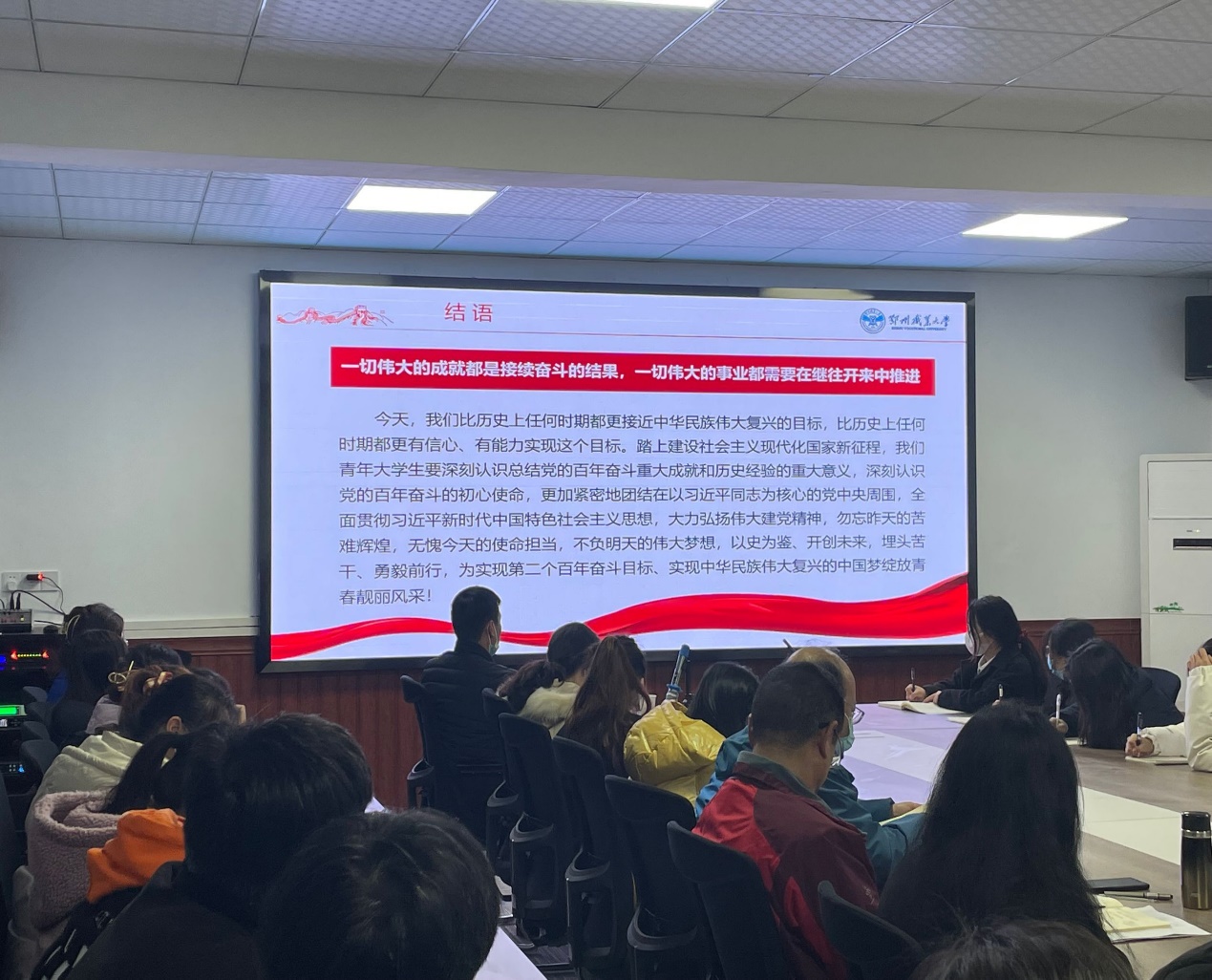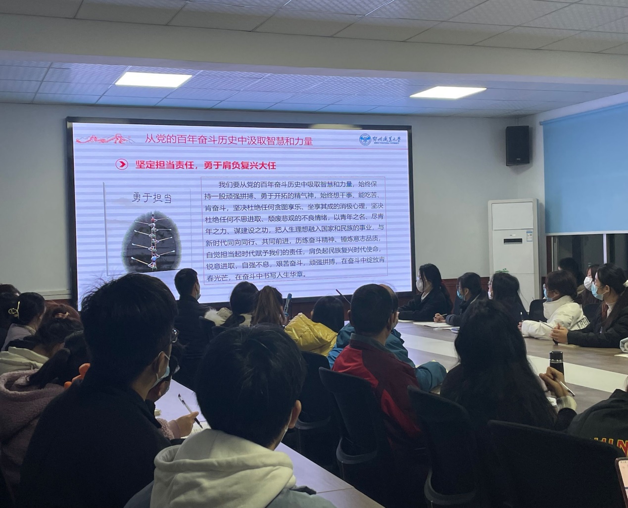 通过本次生动的党课,同学们更加深刻地理解了十九届六中全会精神,纷纷表示将继续加强理论学习,在学思践悟中不断提升思想理论素养。在新时代新征程上,以坚定的信仰、扎实的学识筑牢百年党史丰碑,立足新时代、担当新使命、奋进新征程,立志坚定听党话、感党恩、跟党走,以实现中华民族伟大复兴为己任,增强做中国人的志气、骨气、底气,争做担当民族复兴大任的合格时代新人,在激扬青春、开拓人生、奉献社会的进程中书写无愧于时代的壮丽篇章!